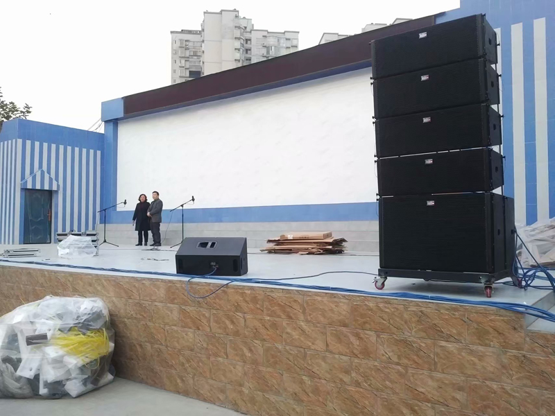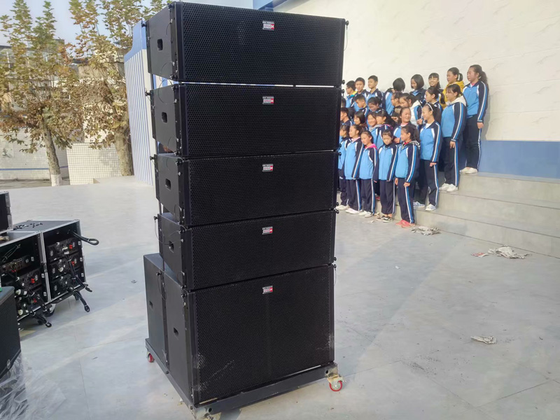 凯里中学室外演出音响,采用HARMAN品牌专业设备,专业4+1线阵,配备舒尔话筒,AKG合唱话筒等